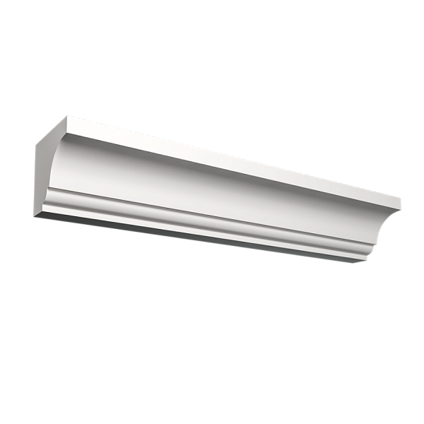 Основной материал карниза — алюминий, который известен своей прочностью и легкостью. Покрытие может быть выполнено из различных материалов, включая матовую и глянцевую краску, а также декоративные напыления.
