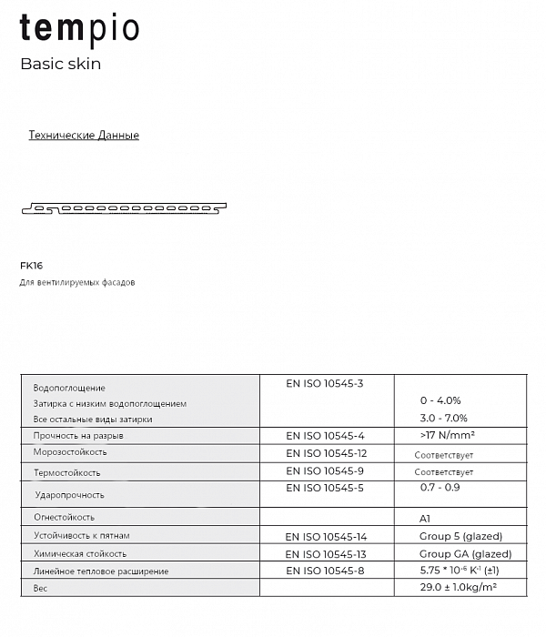 Керамическая плитка для вентилируемого фасада, система FKL-2/16, Tempio