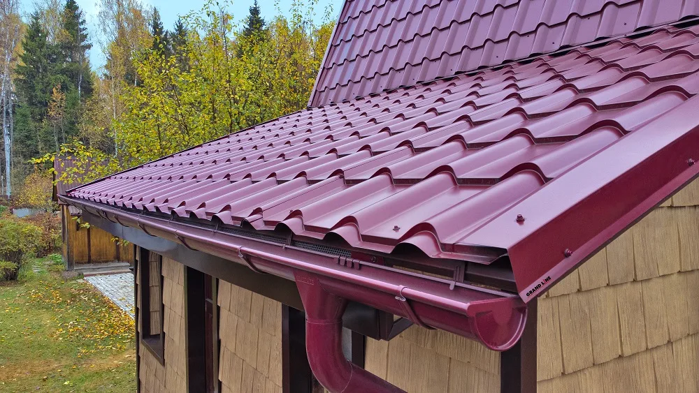 Металлочерепица Grand Line Kamea (Камея) 0,5 Quarzit lite RAL 3005 Красное вино