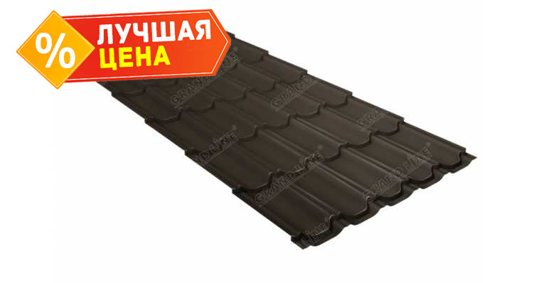 Металлочерепица Grand Line Kvinta plus (Квинта Плюс) 0,5 Rooftop Matte RR 32 Темно-коричневый