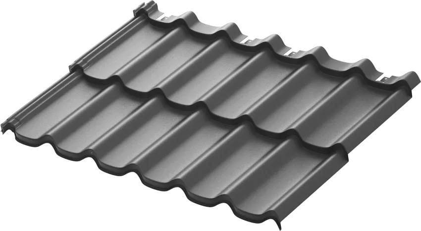 Металлическая модульная черепица Стокгольм. Ключевым преимуществом металлической модульной черепицы AQUASYSTEM является скрытое крепление листов к обрешетке, что позволяет добиться непревзойдённой надёжности кровли и повышенной эстетики. Отличительной особенностью модульной черепицы являются стандартные размеры листов длиной в 2 модуля по 350 мм, что даёт колоссальные преимущества при хранении и транспортировке поддонов с черепицей. Имеет максимальную защиту от коррозии (первый класс цинкования) и повышенную УФ-стабильность. Гарантия 50 лет.