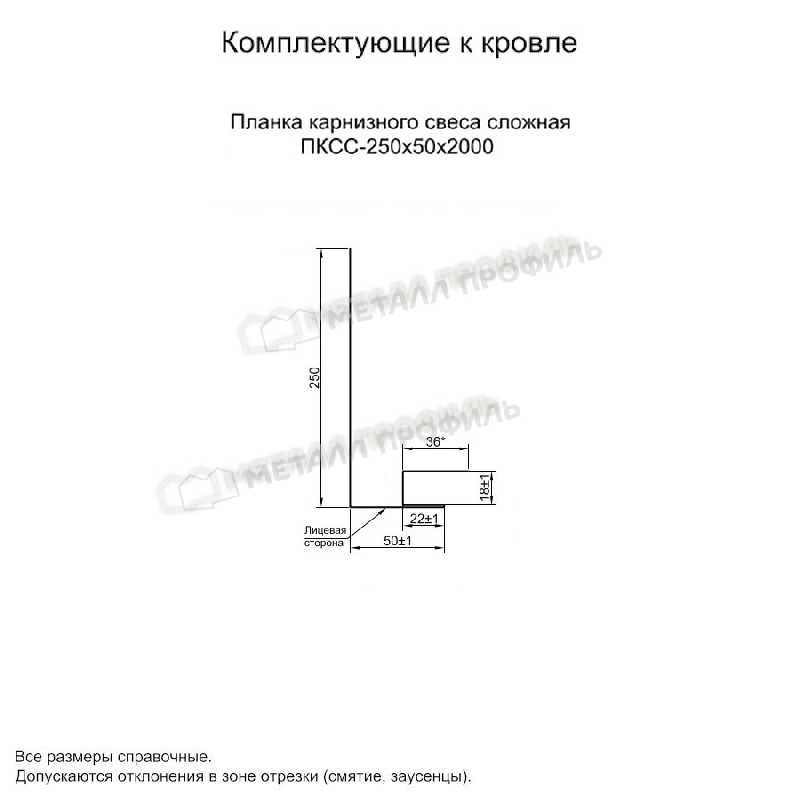 Планка карнизного свеса сложная 250х50х2000 (PURETAN-20-RR11-0.5)