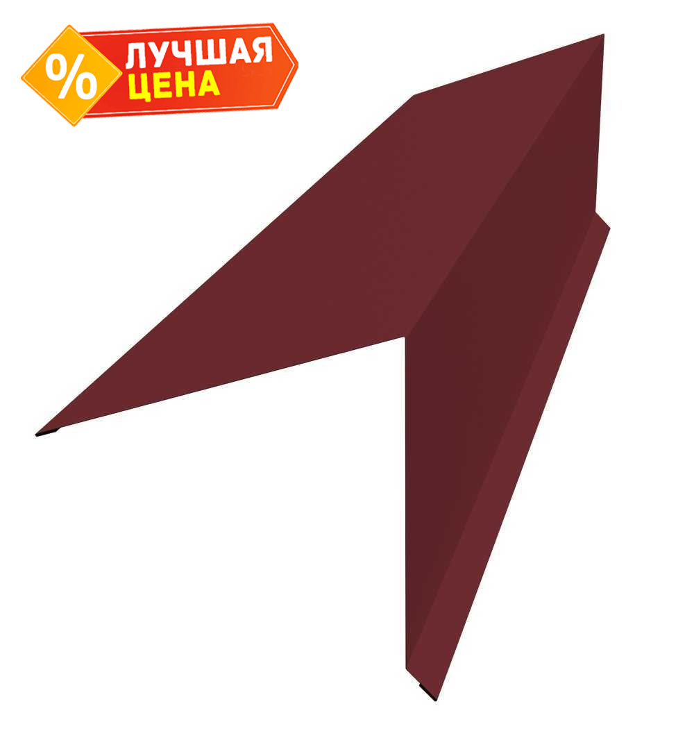 Планка конька односкатной кровли Grand Line 180x160 0,5 Velur RAL 3005 красное вино