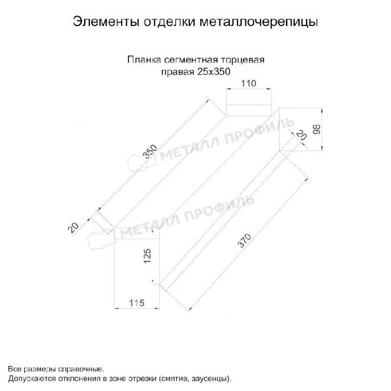 Планка сегментная торцевая правая 350 мм NormanMP (ПЭ-01-5005-0.5)