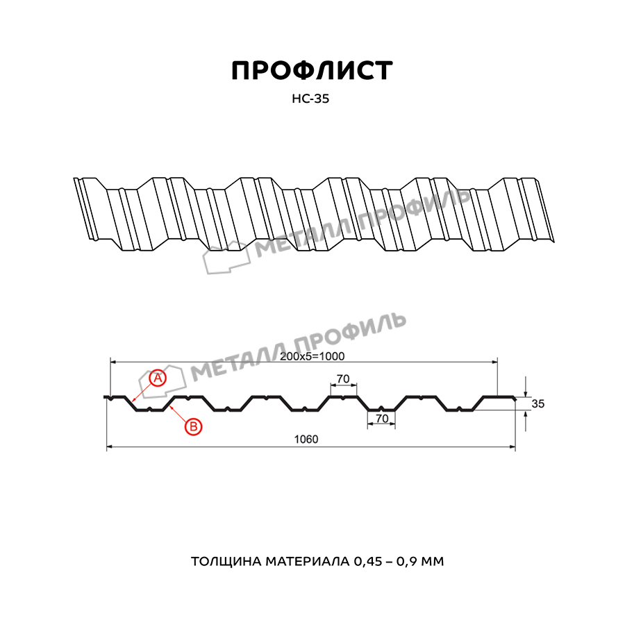 Профиль НС-35 имеет толщину 0,7 мм, что обеспечивает прочность и долговечность конструкции.