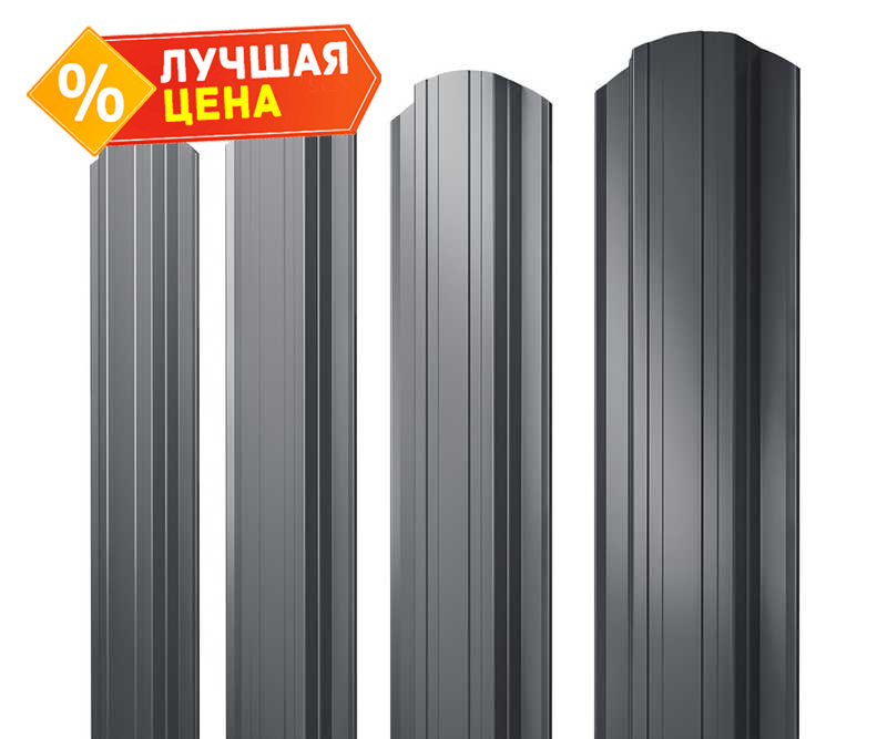 Штакетник Прямоугольный фигурный Grand Line 0,5 Quarzit lite RAL7024 Мокрый Асфальт