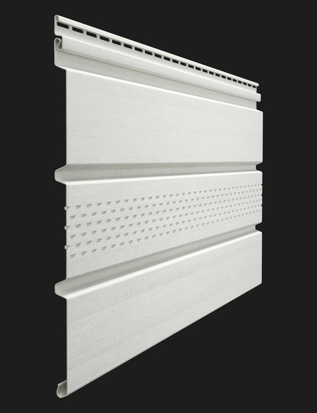 Софит Docke PREMIUM T4 с центральной перфорацией - это качественный и надежный материал для отделки фасадов зданий. Он имеет уникальную центральную перфорацию, которая обеспечивает хорошую вентиляцию и защиту от конденсата. Софит изготовлен из прочного и долговечного пластика, который не подвержен коррозии и воздействию внешних условий. Он имеет элегантный пломбирный цвет, который прекрасно сочетается с различными стилями архитектуры. Софит Docke PREMIUM T4 легко монтируется и обладает высокой стойкостью к ультрафиолетовому излучению, что делает его идеальным выбором для использования на открытом воздухе. Этот софит является отличным решением для создания красивого и функционального фасада вашего здания.
