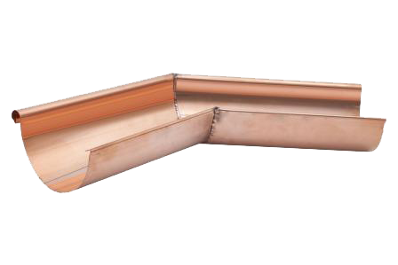 Для жилых домов медные водосточные системы являются отличным выбором благодаря своей долговечности и эстетической привлекательности. Внутренний угол желоба с углом 135 градусов обеспечивает надежный отвод воды, защищая дом от протечек и повреждений.