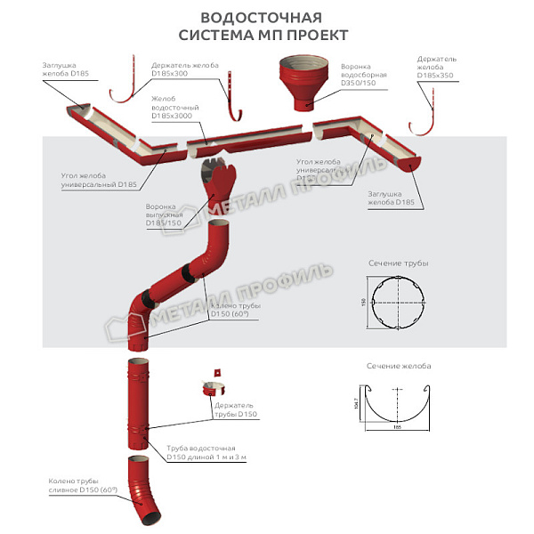 Воронка водосборная МЕТАЛЛ ПРОФИЛЬ ПРОЕКТ D350х150 Ral 8017